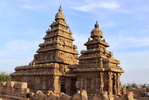 கடல் ஓரத்தில் எழில் ஓவியமாக எழுப்பப்பட்டுள்ள இரண்டு சிவன் கோயில்களை உள்ளடக்கிய கடற்கரை கோவில் இரண்டாம் நரசிம்மவர்மன் என்னும் இராஜசிம்மன் காலத்தியவை. இதுவும் இந்திய தொல்லியல் துறைக்குட்பட்டது. அதனால் கட்டணத்தை செலுத்தி விட்டு உள்ளே சென்று பார்த்து ரசித்தோம்