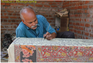 கைவினைப் பொருட்களின் கடைகளும், துணியில் சித்திரங்களை ஒருவர் வரைந்து கொண்டிருக்க அங்கு சென்று பார்த்தோம்.