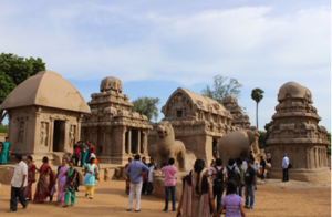 முதலாம் நரசிம்மவர்மன் என்னும் மாமல்லனின் அரிய படைப்பான, ஒற்றைக் கல்லில் செதுக்கப்பட்ட தேர் போன்ற வடிவமைப்புடைய ஐந்து ரதங்களையும், யானை, சிங்கம், நந்தி போன்றவற்றையும் பார்க்க ஆரம்பித்தோம்