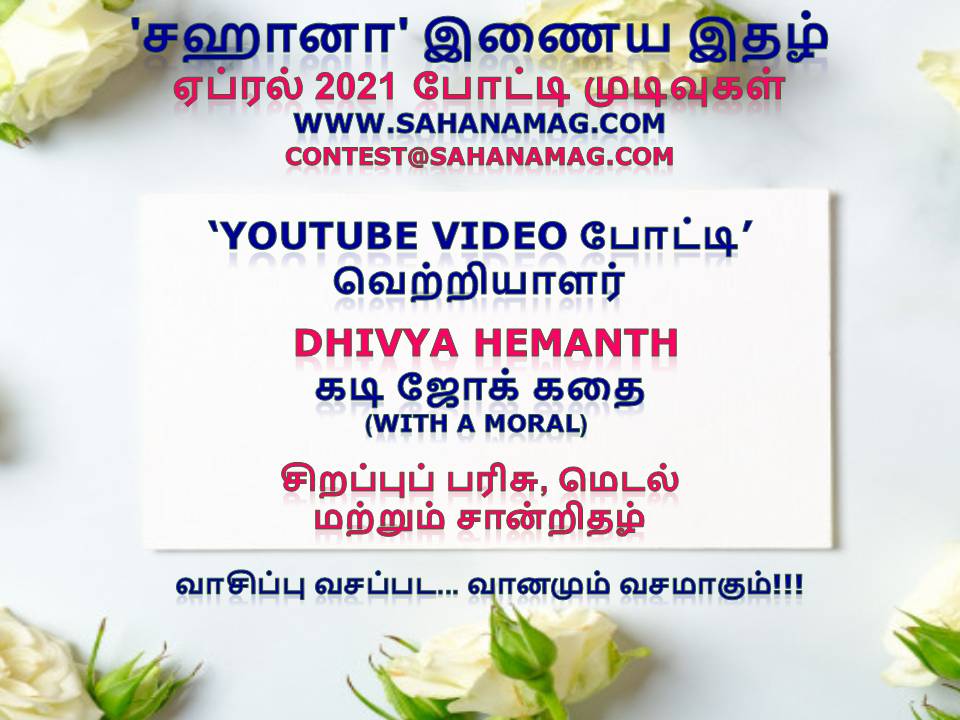 Congrats Dhivya Hemanth. பரிசு பெற்ற Video இணைப்பு இதோ 👇 –