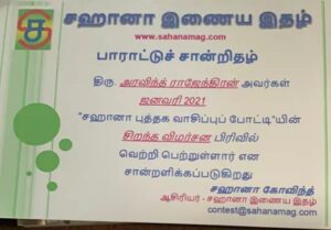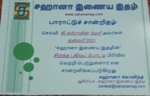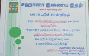 2021 பிப்ரவரி – “சஹானா” புத்தக வாசிப்புப் போட்டி முடிவுகள்