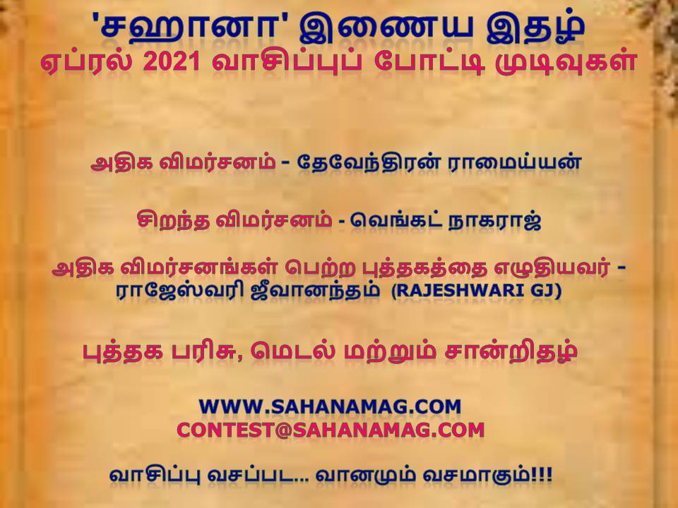 ‘சஹானா’ இணைய இதழ் இதழின் ஏப்ரல் 2021 வாசிப்புப் போட்டி முடிவுகள் 👇