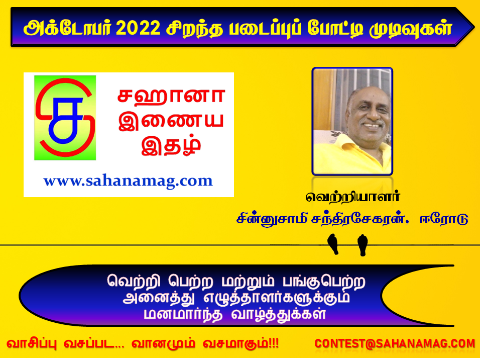 போட்டியில் பங்கேற்ற படைப்புகளை வாசிக்க இணைப்பு – https://sahanamag.com/2022/10/