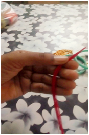 1. பட்டு நூலை படத்தில் காட்டியவாறு சுற்றி கத்தரித்துக் கொள்ளவும்