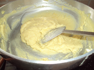- பால் சேர்த்துக் கிளறும் போது, மேலே காணும்படி பேஸ்ட் மாதிரி வரணும். நன்கு கிளறிக் கொடுக்கவும். கட்டி தட்டக் கூடாது!