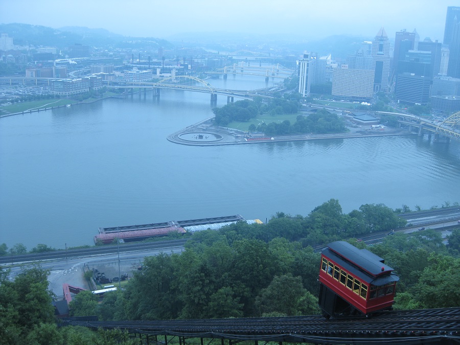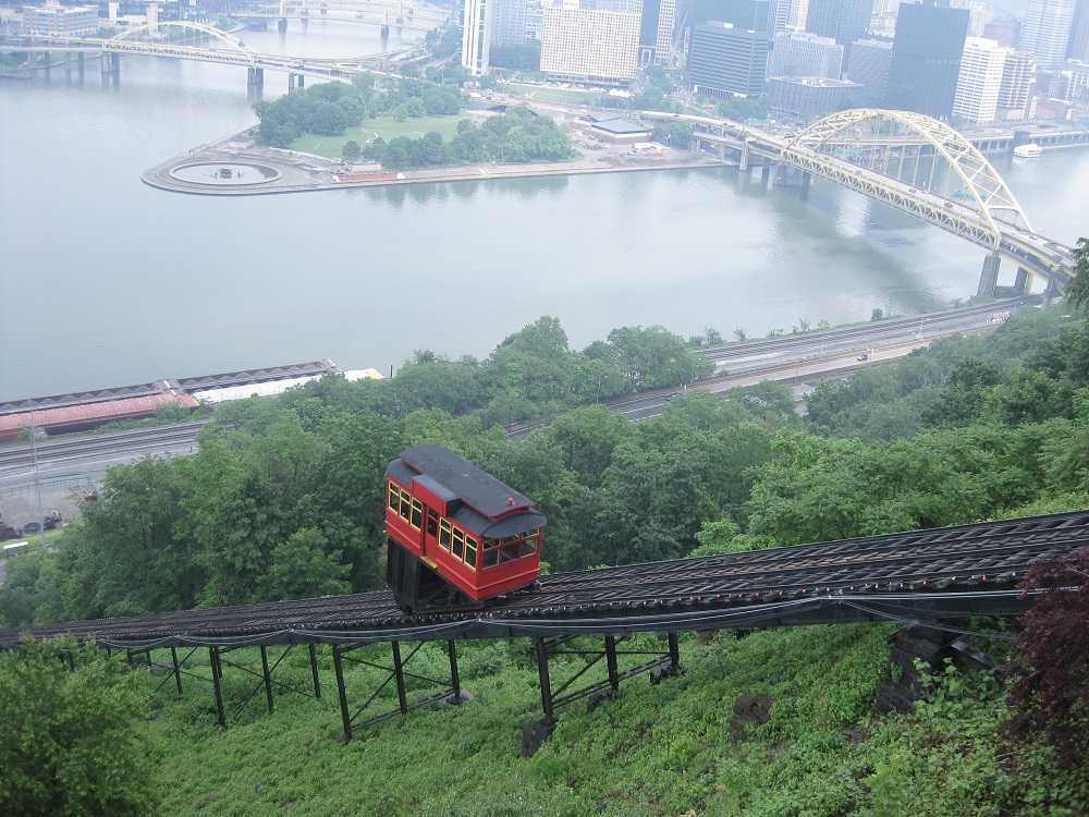 1877ம் ஆண்டு நிறுவப்பட்ட Duquesne Incline என்ற மரத்தால் செய்யப்பட்ட கேபிள் காரில் பயணித்து, மலையின் மேல் பகுதிக்கு சென்றோம்