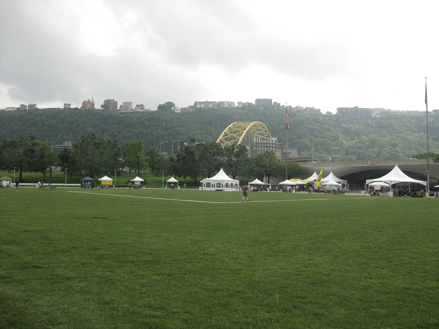 முதல் நாள் பார்த்த பாலத்தைக் கடந்து, மறுபக்கம் சென்றதும், பச்சை பட்டாடையை விரித்தது போன்ற அழகான புல்வெளியுடன் வரவேற்றது பாயிண்ட் ஸ்டேட் பார்க் (Point State Park)